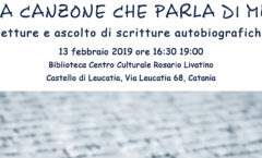 Catania città da leggereComune di Catania | Le Stelle in Tasca ODV-ETSPremio internazionale di scritture autobiografiche biografiche e poetiche dedicate alla Sicilia 8a ed. 2025-2026 Il giorno che imparai a nuotareA cura di Giannamaria D’AntonaVolontaria autobiografa Le Stelle in Tasca ODVIncontro dedicato alla lettura e all’ascolto di racconti brevi autobiografici inediti Sabato …