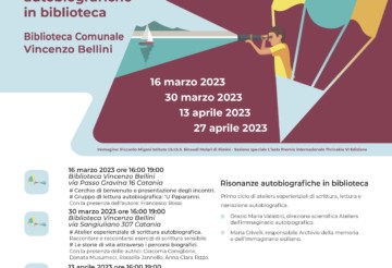 Omaggio alla poesia di Maria Gemma BonannoSabato 8 Novembre 2025 ore 09:30Ingresso libero Biblioteca Vincenzo BelliniVia A. di Sangiuliano 307 Catania Catania città da leggereBando Catania città che legge 2023Comune di Catania – Le Stelle in Tasca ODV-ETSCEPELL Centro per il Libro e la Lettura Thrinakìa 8a edizione 2025-2026Premio internazionale di scritture autobiografiche,biografiche e poetiche, dedicate …