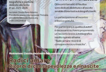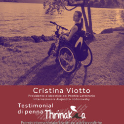 Cristina Viotto, presidente e ideatrice del Premio Letterario Internazionale Alejandro Jodorowsky, testimonial di penna dell’ottava edizione di Thrinakìa, premio internazionale di scritture autobiografiche, biografiche e poetiche dedicate alla Sicilia. L’Isola La rinascita non era poesiaspezzate le ali, spezzate le gambeho annaspato per non affogaree per trovare la forza per rinasceresotto un cielo di …
