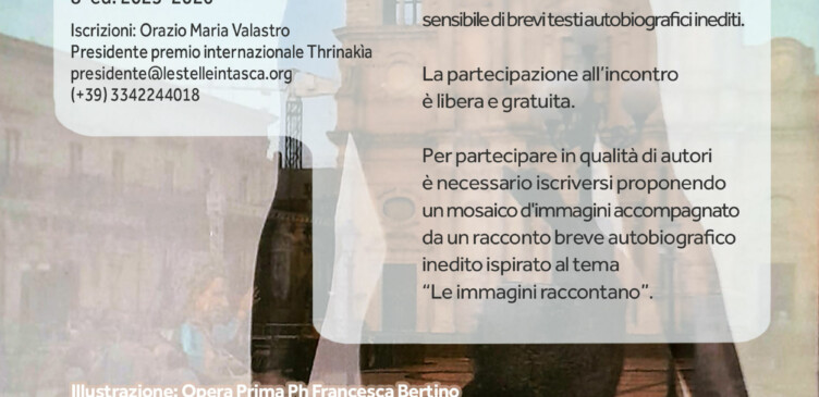 Raccontare la Sicilia è la via affettiva alla voce del cuore della nostra umanitàThrinakìa: un premio letterario dedicato alle scritture autobiografiche, biografiche e poetiche, e all’immaginario della Sicilia L’Organizzazione di Volontariato Le Stelle in Tasca – Ente del Terzo Settore – e la Délégation de la Renaissance Française de Belgique, vi invitano …