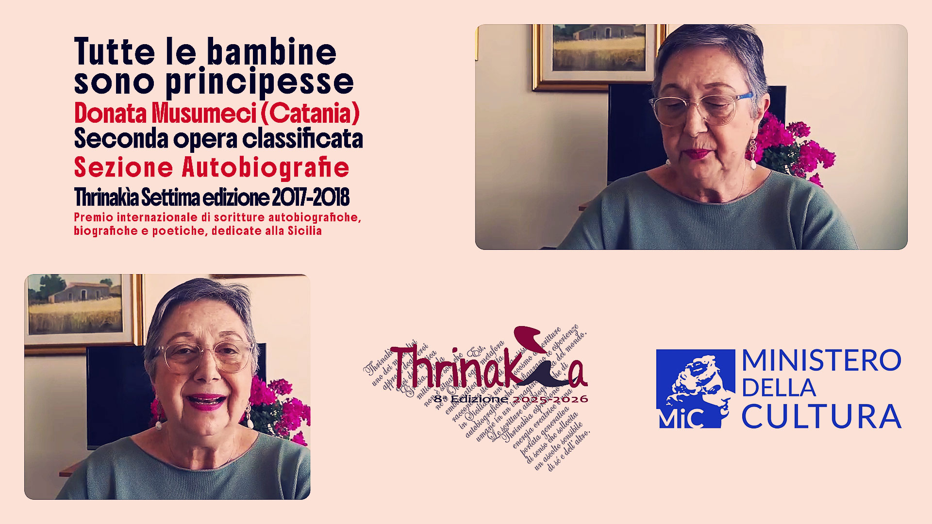 Donata Musumeci legge Tutte le bambine sono principesse di Donata Musumeci Festival Thrinakìa Première YouTube Mercoledì 28 maggio 2025 ore 20:00 Catania città che legge | Comune di Catania | Festival Thrinakìa Premio internazionale | Le Stelle in Tasca ODV Si può seguire la Première sul Canale YouTube degli Ateliers dell'immaginario autobiografico … |